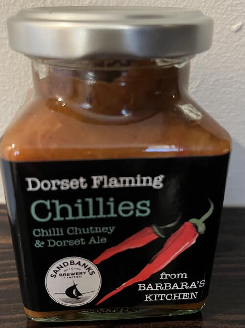 We have partnered with Sandbanks Brewery to bring you a hearty chilli chutney full of vegetables, dates, apples and spices with a fruity local ale. The star of a Ploughman's platter. Not too hot, but with a background warmth. TANGY